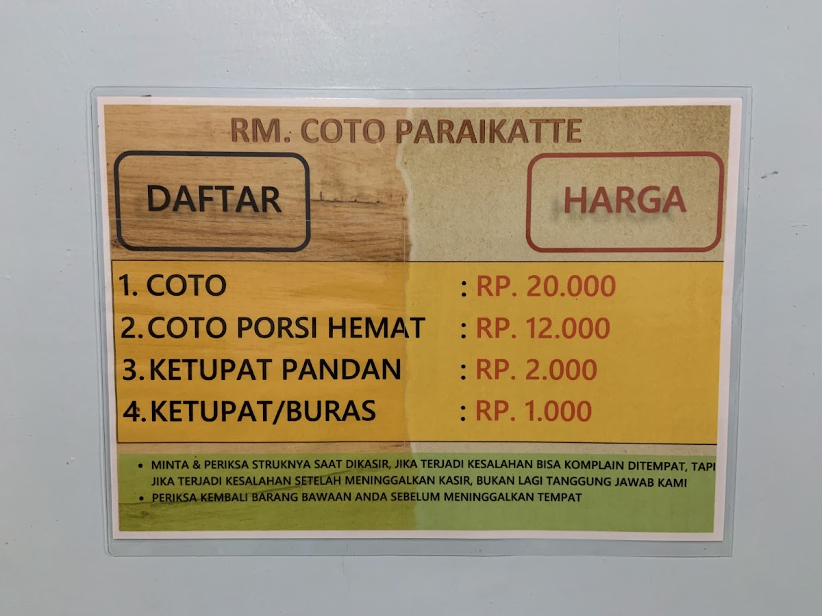 Coto Paraikatte stands out as a must-visit South Sulawesi restaurant, famed for its authentic Makassar-style coto — a rich, spicy broth steeped with traditional herbs and tender, juicy meat. Located conveniently on Jl. A. P. Pettarani, this eatery skillfully marries heritage flavors with hearty portions, typically served alongside buras or ketupat. Guests often praise the soup’s intense spices and depth, although some note the texture of the meat and thickness of buras could be refined. Despite modest seating and simple ventilation, the warm, rustic atmosphere complements the genuine culinary experience. The complimentary muli bananas upon payment is a charming local touch that adds to its appeal. While pricing leans slightly higher than some competitors, the vibrant and layered tastes provide excellent value. For those seeking an immersive taste of South Sulawesi’s iconic coto, Coto Paraikatte offers a satisfying, flavorful journey into Indonesian culinary tradition.